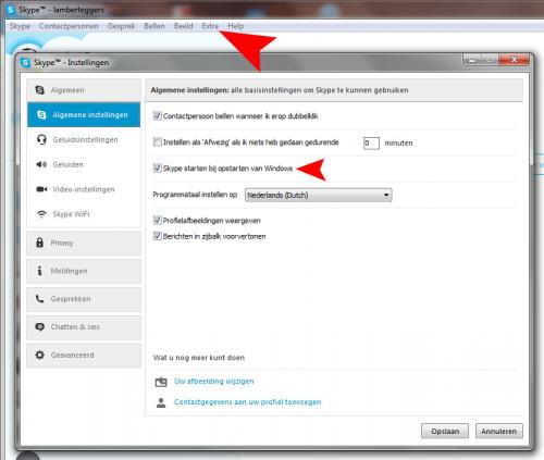 Ik werk met Win 7 maar ik kan mij niet inbeelden dat het menu van Skype in een Mac zo erg zou verschillen. Heb je al geprobeerd met: --> Extra --> Algemene instellingen --> Skype starten bij opstarten van... (in mijn geval Windows) -