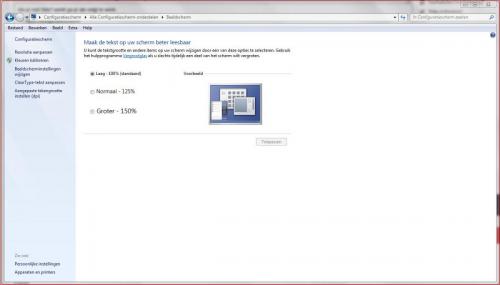 Als je met Win7 werkt ga je als volgt te werk: --> open configuratiescherm --> open alle configuratieschermen-onderdelen --> open beeldscherm Hier kan je de lettergrootte aanpassen.