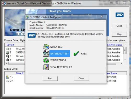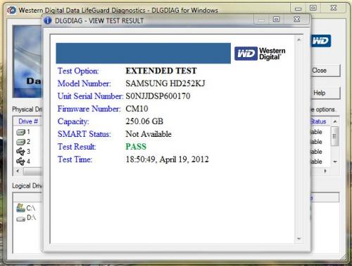 Oeps, foutje. Bijkomend probleem: hij kent de SMART status niet na de test. Hierbij knipsel van melding