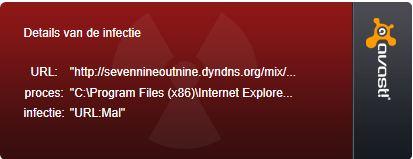 Sinds ongeveer een week krijg ik, wanneer ik deze site aanklik, telkens de melding van AVAST Free dat een bedreiging werd geblokkeerd. Wanneer ik dan kijk naar de melding zegt de zogezegde bezochte site mij absoluut niets. Ik liet MBAM al draaien en ook ESET Online. Hier kwam niets uit. Ik voeg een knipsel van de melding van AVAST. Dit is de laatste melding. Ik moet zeggen dat het nooit om dezelfde gaat.