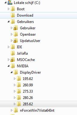 Ik ben mijn PC eens grondig aan het schoonmaken en alle overbodige bestanden te verwijderen. Nu kom ik uit op de map NVIDIA in C:\ waarin, buiten de laatste driverversie 285.62, er nog vier vorige versies staan. Mijn vraag is, mag ik deze handmatig verwijderen? Ik voeg een screentje bij