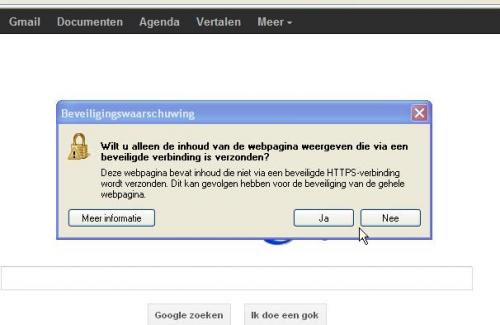 Hoi Maco dankjewel voor het reageren,ik heb IE9 nog niet willen installeren omdat ik al veel gelezen heb dat IE9 niet goed zou werken met XP,(32bits) waar ik nog altijd met werk, heb ondertussen iets gevonden op het net om van dat venster af te geraken, maar weet niet of ik dit mag doen:hmmmm:,lees hier onder, Start Internet Explorer Klik in het menu van IE op Extra en selecteer Internetopties Klik op het tabblad Beveiliging en klik onderaan op de knop Aangepast niveau… In de lijst met Instellingen die nu wordt weergegeven, scroll je een stuk naar beneden tot je de tekst Gemengde inhoud weergeven ziet staan (zie ook screenshot hieronder) Selecteer daar het vakje Inschakelen en klik onderaan op de OK-knop Klik tenslotte op Ja in het venster dat verschijnt om de instellingen op te slaan. Groetjes Reintje