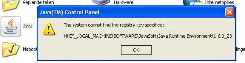 Hallo ik wou een update doen van Java 6 Update 22 naar 24,en lukt niet, ben naar Java Contol Panel gaan zien en kan dat niet mer openen,zie mijn bijlage, hoe kan ik dat herstellen aub. Velen dank Reintje