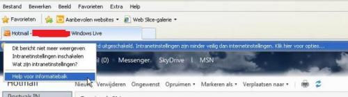Beste Kape en Kurtt Jullie hebben mij echt goed geholpen hoor, mijn messengerprobleem is opgelost,heb nog een vraagje ik krijg nu altijd een vervelende balk,over Intranet,telkens ik IE start wat moet ik daar mee doen zodat het wegblijft? Nogmaals vele dank! groetjes Reintje -