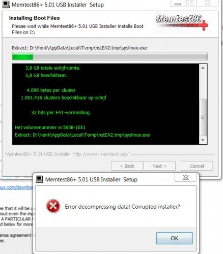 Had gelezen dat je ook via usb stick kon laten draaien, dus nieuwste via die site gedowload uitgepakt en op usb gezet toen alles ingesteld en gaan draaien. geeft steeds een fout aan. ook zal ik eens kijken als ik nog een cd heb en evt het iso programma