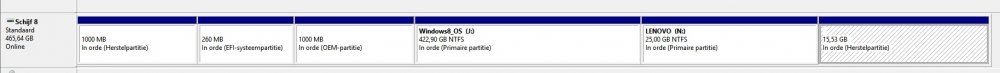 Heb de HDD uit de laptop gehaald en aan een werkende pc gehangen. Met schijfbeheer is er niets bijzonders te zien, volgens mij: