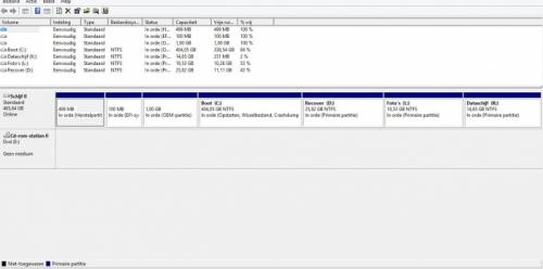 14. Hallo, Ik heb op mijn laptop aparte partities aangemaakt voor bestanden en een voor foto's. Achteraf blijkt nu dat deze veel te klein zijn. Wil ik echter een volume uitbreiden lukt me dat niet, ook verkleinen niet. Wat is hiervan de redenen. in de bijlage zit een overzicht van mijn schijfbeheer. Alvast dank. chrisv