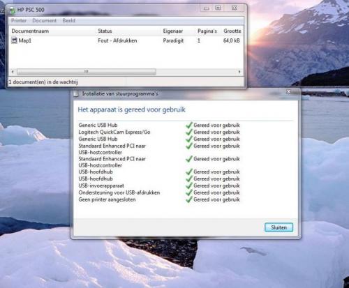 Hallo, Ik heb onlangs een nieuwe pc gekocht. Voor de aansluitingen van bijvoorbeeld de printer is er alleen maar een usb poort '(géén parallele aansluiting). Om mijn printer, HP PSC 500 all-in-one, toch aan te sluiten heb ik een dongel voor paralle naar usb aangeschaft. Op zich past de aansluiting, ik denk ook niet dat daar het probleem zit. Ik kan echter (ook bij HP niet) een geschikte driver vinden voor deze printer (het zou volgens hp automatisch met windows 7 moeten werken). Hij doet het echter niet. Wie kan mij helpen? Alvast bedankt.