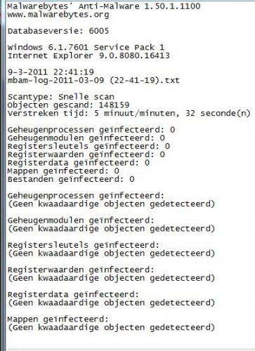 hallo, hierbij de resultaten van de scan. Logfile of Trend Micro HijackThis v2.0.4 Scan saved at 22:46:15, on 9-3-2011 Platform: Windows 7 SP1 (WinNT 6.00.3505) MSIE: Internet Explorer v9.00 (9.00.8080.16413) Boot mode: Normal Running processes: C:\Windows\system32\taskhost.exe C:\Windows\system32\Dwm.exe C:\Windows\Explorer.EXE C:\Program Files\BitDefender\BitDefender 2010\bdagent.exe C:\Program Files\Intel\Intel Matrix Storage Manager\IAAnotif.exe C:\Program Files\BitDefender\BitDefender 2010\seccenter.exe C:\Program Files\IDT\WDM\sttray.exe C:\Program Files\Launch Manager\HotkeyApp.exe C:\Program Files\Launch Manager\OSD.exe C:\Program Files\Launch Manager\WButton.exe C:\Program Files\FSP\FspUip.exe C:\Program Files\Google\Google Desktop Search\GoogleDesktop.exe C:\Program Files\Common Files\Java\Java Update\jusched.exe C:\Program Files\Windows Sidebar\sidebar.exe C:\Windows\system32\wuauclt.exe C:\Program Files\Trend Micro\HiJackThis\HiJackThis.exe R1 - HKCU\Software\Microsoft\Internet Explorer\Main,Search Page = Bing R1 - HKLM\Software\Microsoft\Internet Explorer\Main,Search Page = Bing R0 - HKLM\Software\Microsoft\Internet Explorer\Search,SearchAssistant = R0 - HKLM\Software\Microsoft\Internet Explorer\Search,CustomizeSearch = O2 - BHO: AcroIEHelperStub - {18DF081C-E8AD-4283-A596-FA578C2EBDC3} - C:\Program Files\Common Files\Adobe\Acrobat\ActiveX\AcroIEHelperShim.dll O2 - BHO: Search Helper - {6EBF7485-159F-4bff-A14F-B9E3AAC4465B} - C:\Program Files\Microsoft\Search Enhancement Pack\Search Helper\SEPsearchhelperie.dll O2 - BHO: Windows Live ID Sign-in Helper - {9030D464-4C02-4ABF-8ECC-5164760863C6} - C:\Program Files\Common Files\Microsoft Shared\Windows Live\WindowsLiveLogin.dll O2 - BHO: SkypeIEPluginBHO - {AE805869-2E5C-4ED4-8F7B-F1F7851A4497} - C:\Program Files\Skype\Toolbars\Internet Explorer\skypeieplugin.dll O2 - BHO: Java Plug-In 2 SSV Helper - {DBC80044-A445-435b-BC74-9C25C1C588A9} - C:\Program Files\Java\jre6\bin\jp2ssv.dll O3 - Toolbar: BitDefender Toolbar - {381FFDE8-2394-4f90-B10D-FC6124A40F8C} - C:\Program Files\BitDefender\BitDefender 2010\IEToolbar.dll O4 - HKLM\..\Run: [iAAnotif] C:\Program Files\Intel\Intel Matrix Storage Manager\iaanotif.exe O4 - HKLM\..\Run: [sysTrayApp] %ProgramFiles%\IDT\WDM\sttray.exe O4 - HKLM\..\Run: [HotkeyApp] "C:\Program Files\Launch Manager\HotkeyApp.exe" O4 - HKLM\..\Run: [LMgrVolOSD] "C:\Program Files\Launch Manager\OSD.exe" O4 - HKLM\..\Run: [Wbutton] "C:\Program Files\Launch Manager\Wbutton.exe" O4 - HKLM\..\Run: [fspuip] "C:\Program Files\FSP\fspuip.exe" O4 - HKLM\..\Run: [PDVD9LanguageShortcut] "C:\Program Files\CyberLink\PowerDVD9\Language\Language.exe" O4 - HKLM\..\Run: [uCam_Menu] "C:\Program Files\CyberLink\YouCam\MUITransfer\MUIStartMenu.exe" "C:\Program Files\CyberLink\YouCam" UpdateWithCreateOnce "Software\CyberLink\YouCam\3.0" O4 - HKLM\..\Run: [NvCplDaemon] RUNDLL32.EXE C:\Windows\system32\NvCpl.dll,NvStartup O4 - HKLM\..\Run: [Google Desktop Search] "C:\Program Files\Google\Google Desktop Search\GoogleDesktop.exe" /startup O4 - HKLM\..\Run: [bDAgent] "C:\Program Files\BitDefender\BitDefender 2010\bdagent.exe" O4 - HKLM\..\Run: [bitDefender Antiphishing Helper] "C:\Program Files\BitDefender\BitDefender 2010\IEShow.exe" O4 - HKLM\..\Run: [Adobe Reader Speed Launcher] "C:\Program Files\Adobe\Reader 9.0\Reader\Reader_sl.exe" O4 - HKLM\..\Run: [Adobe ARM] "C:\Program Files\Common Files\Adobe\ARM\1.0\AdobeARM.exe" O4 - HKLM\..\Run: [sunJavaUpdateSched] "C:\Program Files\Common Files\Java\Java Update\jusched.exe" O4 - HKLM\..\RunOnce: [Malwarebytes' Anti-Malware] C:\Program Files\Malwarebytes' Anti-Malware\mbamgui.exe /install /silent O4 - HKCU\..\Run: [sidebar] C:\Program Files\Windows Sidebar\sidebar.exe /autoRun O4 - HKCU\..\Run: [skype] "C:\Program Files\Skype\\Phone\Skype.exe" /nosplash /minimized O4 - HKUS\S-1-5-19\..\Run: [sidebar] %ProgramFiles%\Windows Sidebar\Sidebar.exe /autoRun (User 'LOCAL SERVICE') O4 - HKUS\S-1-5-19\..\RunOnce: [mctadmin] C:\Windows\System32\mctadmin.exe (User 'LOCAL SERVICE') O4 - HKUS\S-1-5-20\..\Run: [sidebar] %ProgramFiles%\Windows Sidebar\Sidebar.exe /autoRun (User 'NETWORK SERVICE') O4 - HKUS\S-1-5-20\..\RunOnce: [mctadmin] C:\Windows\System32\mctadmin.exe (User 'NETWORK SERVICE') O9 - Extra button: Verzenden naar OneNote - {2670000A-7350-4f3c-8081-5663EE0C6C49} - C:\PROGRA~1\MIF5BA~1\Office12\ONBttnIE.dll O9 - Extra 'Tools' menuitem: Verz&enden naar OneNote - {2670000A-7350-4f3c-8081-5663EE0C6C49} - C:\PROGRA~1\MIF5BA~1\Office12\ONBttnIE.dll O9 - Extra button: Skype add-on for Internet Explorer - {898EA8C8-E7FF-479B-8935-AEC46303B9E5} - C:\Program Files\Skype\Toolbars\Internet Explorer\skypeieplugin.dll O9 - Extra 'Tools' menuitem: Skype add-on for Internet Explorer - {898EA8C8-E7FF-479B-8935-AEC46303B9E5} - C:\Program Files\Skype\Toolbars\Internet Explorer\skypeieplugin.dll O9 - Extra button: Research - {92780B25-18CC-41C8-B9BE-3C9C571A8263} - C:\PROGRA~1\MIF5BA~1\Office12\REFIEBAR.DLL O9 - Extra button: eBay.nl - {0B65DCC9-1740-43dc-B19C-4F309FB6A6CA} - eBay, de wereldwijde online handelsplaats (file missing) (HKCU) O9 - Extra 'Tools' menuitem: eBay.nl - {0B65DCC9-1740-43dc-B19C-4F309FB6A6CA} - eBay, de wereldwijde online handelsplaats (file missing) (HKCU) O10 - Unknown file in Winsock LSP: c:\program files\common files\microsoft shared\windows live\wlidnsp.dll O10 - Unknown file in Winsock LSP: c:\program files\common files\microsoft shared\windows live\wlidnsp.dll O11 - Options group: [ACCELERATED_GRAPHICS] Accelerated graphics O16 - DPF: {E2883E8F-472F-4FB0-9522-AC9BF37916A7} - http://platformdl.adobe.com/NOS/getPlusPlus/1.6/gp.cab O18 - Protocol: skype-ie-addon-data - {91774881-D725-4E58-B298-07617B9B86A8} - C:\Program Files\Skype\Toolbars\Internet Explorer\skypeieplugin.dll O18 - Protocol: skype4com - {FFC8B962-9B40-4DFF-9458-1830C7DD7F5D} - C:\PROGRA~1\COMMON~1\Skype\SKYPE4~1.DLL O18 - Protocol: wlpg - {E43EF6CD-A37A-4A9B-9E6F-83F89B8E6324} - C:\Program Files\Windows Live\Photo Ga