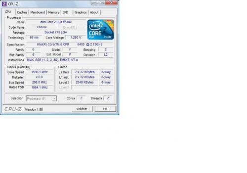 Intel(R) Core(TM)2 CPU 6400 @ 2.13GHz, 2128 Mhz