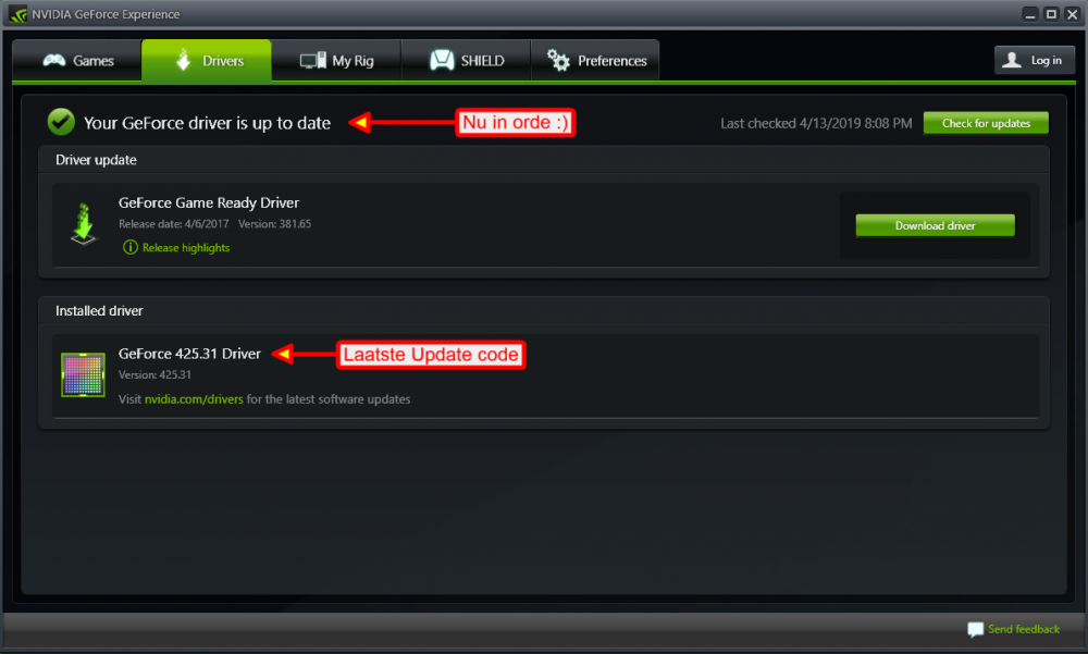 Ik heb het programma geopend en zie dat GeForge Game Ready Driver verouderd is. Na het drukken op Download komt er een melding dat er geen verbinding is met NVIDIA? Kun je deze driver misschien op een andere manier downloaden?