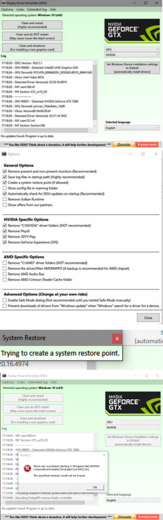 Ik heb de procedure uitgevoerd met een nieuw DDU programma Uninstall DDU v18.0.1.1 zie bijlage, de computer ging ook in de veilige modus tijdens de uninstall. Ik heb ook de DDU log meegesturrd, ik wacht even met installatie totdat je het hebt goedgekeurd svp. 2019-04-13__17-18-24_DDULog.xml