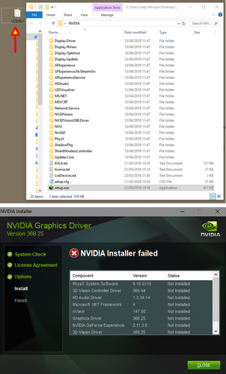 Na het downloaden heb ik de hieronder staande stappen uitgevoerd, de installatie wordt dan uitgevoerd in : C:\NVIDIA\DisplayDriver\368.25\Win10_64\International Er komt geen tool, Display Driver Uninstaller?