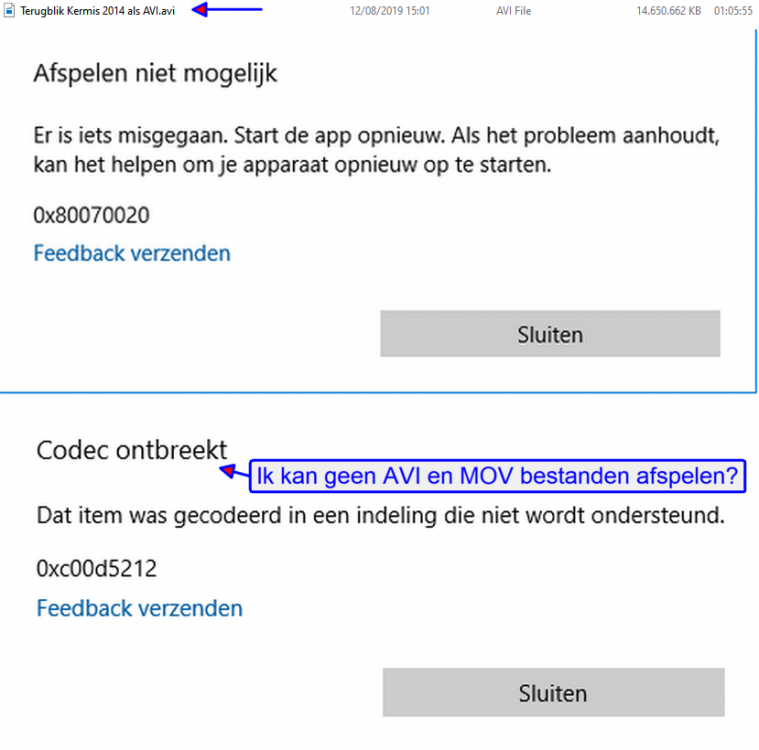 Afspelen video bestand AVI en MOV lukt niet meer?
