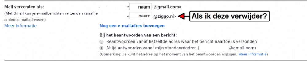 1e Er komt in Outlook 2016 geen mail van Gmail binnen, alleen Outlook berichten. 2e Als ik die website open zie ik alleen alle Gmail berichten staan Kan ik dan proberen om naam@ziggo.nl te verwijderen?