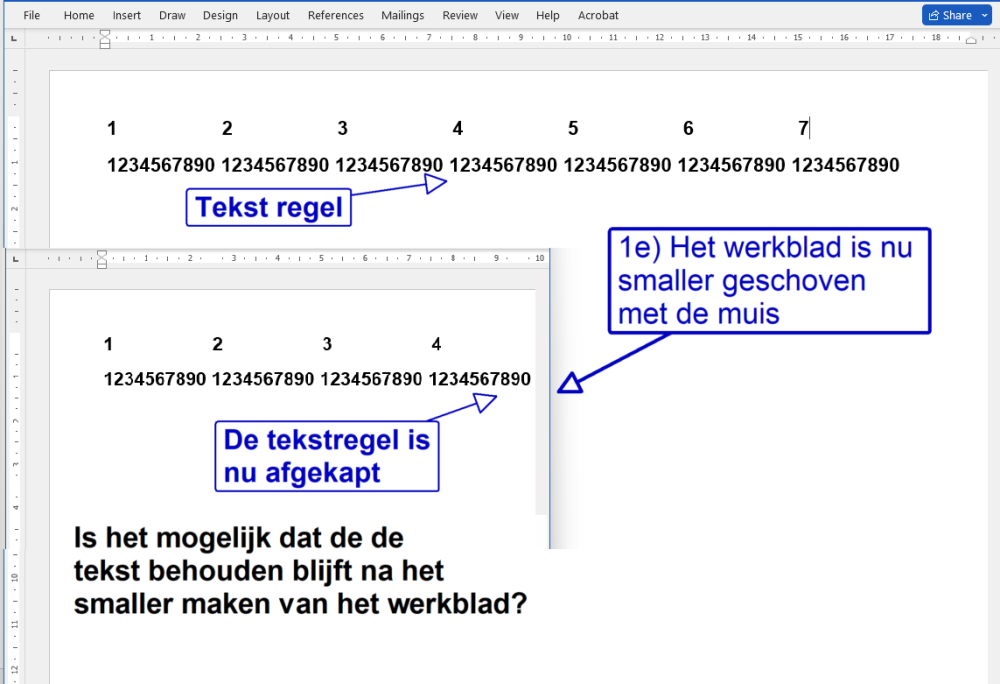 Geacht forum, als ik het werkblad in MS Word smaller maak, dan word t de regel afgekapt. Kan ik hier iets aan doen svp?
