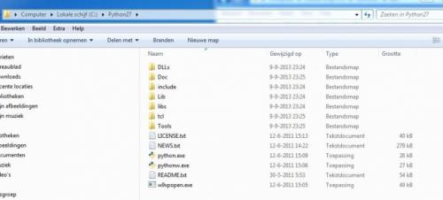 Beste Falstring, hartelijk bedankt, ik heb python-2.7.2.msi gedownload, daarna haozip_v3.0_enu.exe, daarna haozip_v3.0_enu.exe opgestart, en toen heb ik python-2.7.2.msi uitgepakt, en is geplaatst in C:\Python27 Echter ik heb in deze map, of in de sub mappen de python27.dll file niet kunnen vinden? Misschien heb ik een fout gemaakt, zie bijlage?