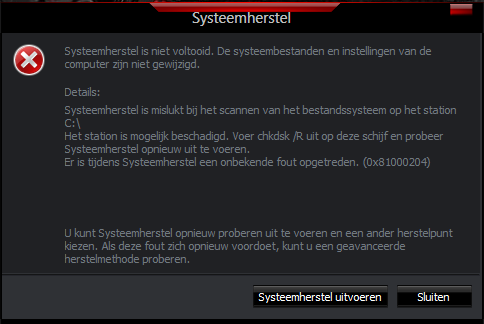 Weer een systeem herstel gedaan, helaas weer geen succes