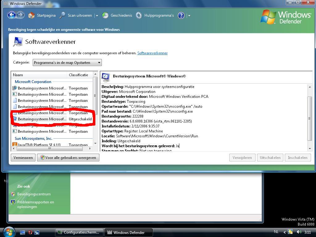 Zoals Darthia al zei vind ik Windows Defender maar rommel kijk maar naar jou probleem. Zolang je maar een firewall hebt een anti-spyware en anti-virus programma hebt ben je meer dan veilig. Windows Defender zou ik er niet afgooien alleen als hij nog meer problemen blijft geven. @nijltjetweety: ben je tevreden over Vista? Nog veel succes! grtz -