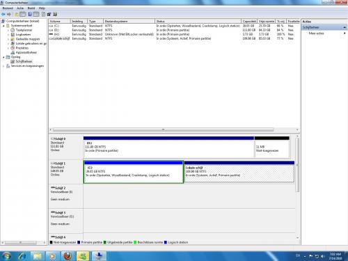 jongenss het is me gelukt ik heb die hardeschijf geformateerd op NTFS na 100 procent deed ik em uit en nu geeft hij het goede vermogen. maar nu zit ik met een nieuw probleem ik heb mijn pc opnieuw geinstaleerd en heb ik schijf c: gedeeld en nu zie ik de schijf die ik heb gedeeld alleen de andere niet hoe kan dat??