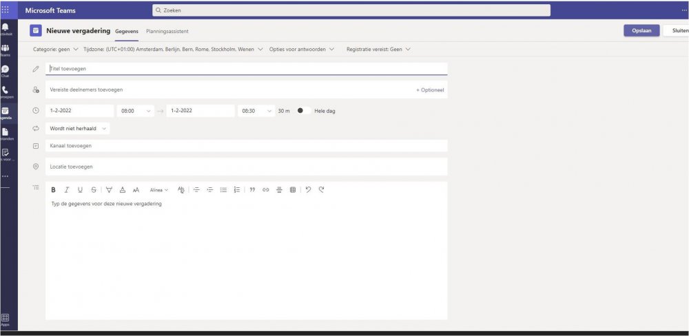 Ik wil een link van een bestaande teams vergadering plakken in mijn agenda Outlook van het werk. Soms staand deze automatisch in mijn agenda en soms niet. Het is overzichtelijk om alles in mijn agenda te plaatsen. Ik kopieer de ontvangen link en maar niet vinden waar ik deze moet plakken op mijn agenda... iemand? Alvast bedankt.