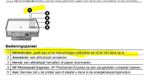 Gebruik al geruime tijd printer, HP photosmart D6160, nooit geen problemen. Maar al enkele dagen wil hij niet meer printen. Heb enkele cartridges vervangen HP Nr 363, originele cartridges. Het volume staat nu allemaal vol voor meer dan 50%. Het lampje links boven blijft pinken (normaal geen of onvoldoende inkt). Zie bijlage. Heb de contacten proper gemaakt, contacten en aansluitingen herstoken, lampje blijft pinken en printen lukt niet, ook niet uilijnen ed. Iemand die kan helpen? -