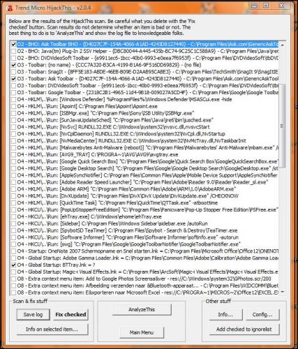 Heb enkel "scan" gebruikt, niet "Fix checked", logje in bijlage. Is dit voldoende? hijackthis.log