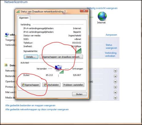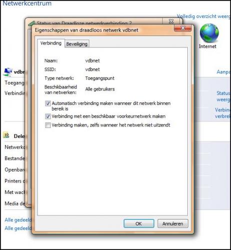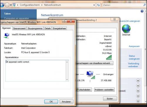Hier heb ik fysieke adres ingegeven + save settings, zoals vermeld... maar de balk loopt nu al een uur en is nog niet halverwege, is dat normaal. Heb gewone verbinding zoals altijd. Moet ik hier blijven wachten? Bij netwerkcenter heb ik op de verbinding rechtermuisknop volgende scherm (bijlage_1) Hier krijg je eigenschappen Algemeen en Activiteit. Bij geen van beiden krijg ik iets in de zin van "laat windows mijn netwerk configureren". (bijlage 2 & 3). Is het misschien Netwerk delen bij eigenschappen Activiteit - Beveiliging?- 23 antwoorden