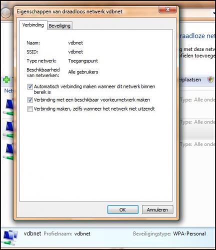 Op de laptop zonder aansluiting kon ik de handeling niet afwerken. Heb een collega laten komen die de klus in 10 min klaarde. Her had te maken met de router instelling. Wpa2 wijzigen? Beide laptops hebben nu connectie. Mag ik u van harte bedanken voor uw hulp! Topics mag gesloten worden.- 23 antwoorden
