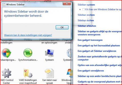 Heeft de systeembeheerder niet meer mogelijkheden? Momenteel staat deze als administrator. Updaten van windows lukt me prima. Het gebruik van de Sidebar is maar en detail, maar toch wil ik deze kunnen gebuiken. Even afwachten op een reactie om beide zaken op te lossen.