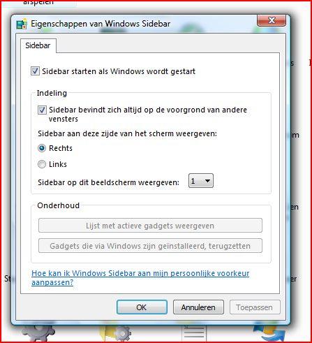Toch niet, omgekeerd. De sitebar komt niet op bureaublad. Dat is juist het probleem, het mag dan wel een gadget zijn, het is wel leuk speelgoed. Ik wil deze juist op het bureaublad plaatsen, alles staat aan (zoals op de desktop) maar het lukt niet. Twee pc's zijn wel een netwerk, maar denk dat het moet worden gezocht bij de accounts, ben wel de enige gebruiker. Momenteel sta ik geregistreerd als "Administrator". Heeft het iets te maken met standaardgebruikersaccount/ systeembeheerder :s
