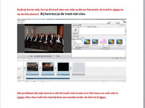 Hoi, Importeren audio in nero vision 10 lukt niet bij de computer van een kennis van mij. Als je op importeren klikt dan ga je naar bestand importeren. Daarna kom je in de verkenner. Klik je op een map muziek, dan geeft hij niet aan de rechterkant de tracks weer. In nero vision kun je dan niet de track onder de dia's zetten. Het vreemde is dat het op mijn computer wel lukt. Wie weet wat de oorzaak is.