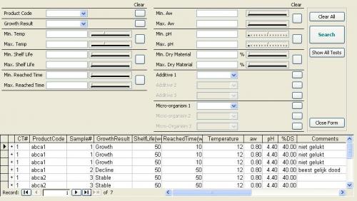 4. Beste Lezer, ik ben een database aan het maken, waarbij het zoekscherm gebruik maakt van een complexe query. De database is een productendatabase. Ieder product heeft zo zijn naam, groep etc. Maar in ieder product zitten bepaalde stoffen, additieven genoemd. Nu is het ook zo dat ieder additief weer in een ander product kan zitten. Een veel op veel relatie dus (zie bijlage relaties.jpg). Nu is het zo dat in het formulier gezocht moet kunnen worden op alle eigenschappen van het product. Alles werkt goed, behalve de additieven. Ik kan de additieven wel werkend krijgen, maar dan krijg ik dubbele records (zie bijlage formulier.jpg). CT#, ProductCode en Sample# samen zijn de sleutel, die moeten uniek blijven, nadat de gebruiker gezocht heeft op de producten. De additieven hoeven niet direct in de selectiequery getoond te worden, maar moeten wel gebruikt worden om op te selecteren. Waar de additieven wel getoond kunnen worden is bijvoorbeeld in een subquery. Heeft iemand een idee hoe ik dit aan ga pakken? Ik heb het geprobeerd met Left/Right joins, met unieke records/value's optie. Allen tevergeefs. Het zou mij zo enorm helpen als iemand hier een antwoord op had. Ik ben er al best wel lang mee bezig, zonder enige progressie. Mijn kennis over Access is niet groot genoeg om dit op te lossen. Als er meer informatie nodig is van de database kan ik dit zeker geven. Alvast heel erg bedankt!