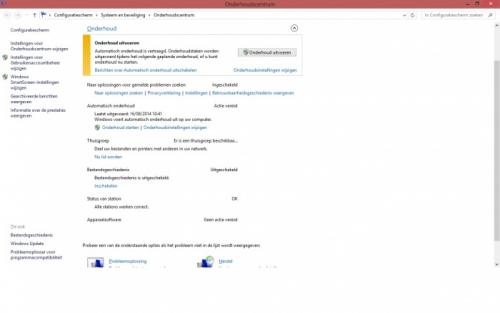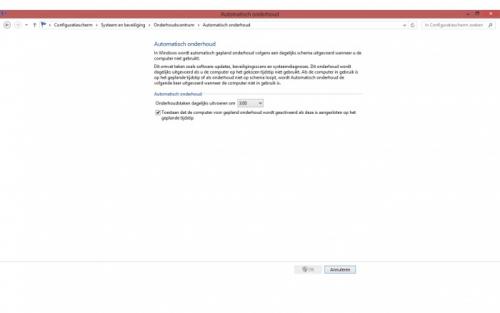 Als ik op onderhoud starten klikt begint ie dan met "onderhoud wordt uitgevoerd" en zie je een klokje staan bij het vlaggetje. Maar meestal nog geen 5min later stopt dit en staat er weer dat vlaggetje met de melding dat onderhoud vertraagd is. Het is net of het onderhoud door iets onderbroken is. Hier zie je mijn printscreen: "Toestaan dat de computer voor gepland onderhoud wordt geactiveerd als deze is aangesloten op het geplande tijdstip" Is bij mij nu aangevinkt maar dat gaf me geen resultaat.