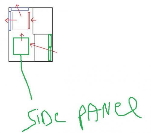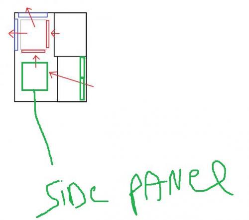 hmm, had gehoopt dat het schetsje wat duidelijkheid zo brengen maar het het mij wat verward ( niet slecht bedoeld uiteraard, vind het heel fijn dat je de moeite doet ;-) ) Die "rode" fan is blijkbaar niet naar het zijnpaneel gericht, maar naar het " frontpanel" ? -