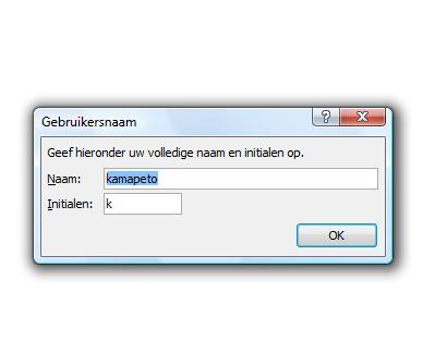 4. Telkens als ik Word open moet ik op OK klikken in het scherm waar om mijn initialen worden gevraagd. Hoe kan ik dat definitief laten verdwijnen?