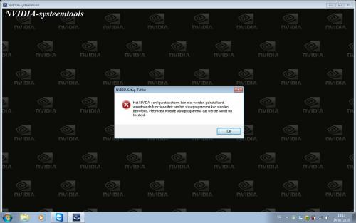 2. Dat klopt inderdaad, het is een NVidia kaart. Ik heb die driver proberen te installeren, maar deze geeft een foutmelding waardoor er niks aan het probleem veranderd is.
