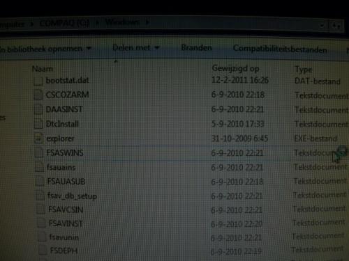 ik heb zelf wat geprobeert maar nu opent hij echt niks meer;... ik zat bij me c schijft en heb daar de .exe bestand gepakt, toen openen met en helemaal gebladert naar hetzelfde .exe bestand. toen op ok gedrukt nu heeft iedere snelkoppeling en exe bestand een icoontje van windows verkenner en lukt niks meer :S nee kijk, alle progamma's werken niet meer omdat de .exe bestanden naar 1 soort bestand zijn verwezen. (is mijn gok als ik het zo bekijk) helaas kan ik je geen print geven want dat werkt ook niet :S allemaal erg verwarrend want ik kan dingen snel oplossen maar heb nog nooit met zulke dingen te maken gehad... -