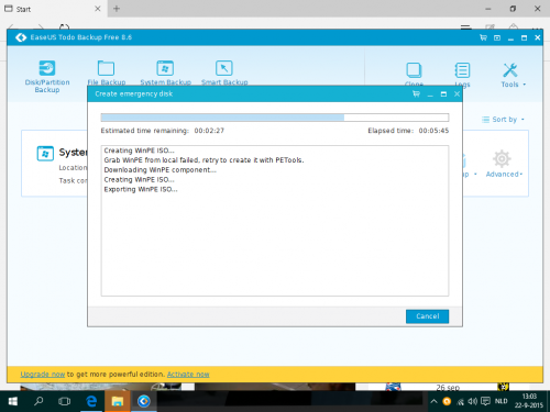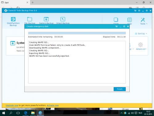 Beste Passer, sry for the confusion maar als ik het programma start en Create WinPe emergency disk en CD/DVD aanklik wordt er dan een bestandje gedownload? Ik dacht dat het dan automatisch op een disk werd gebrand? zie screen print