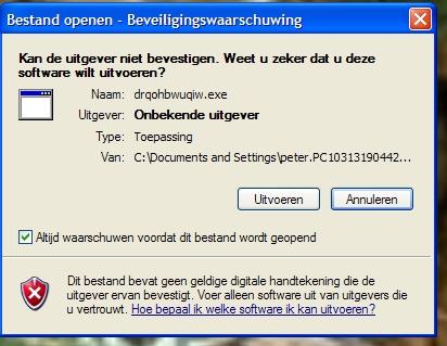 Hallo Kape, Mijnvirusscanner AVG reageert hier ook op Maar hoe komt het dat ik net vandaag toch problemen heb? ik heb net een topic opgestart hieromtrent Grts Peter