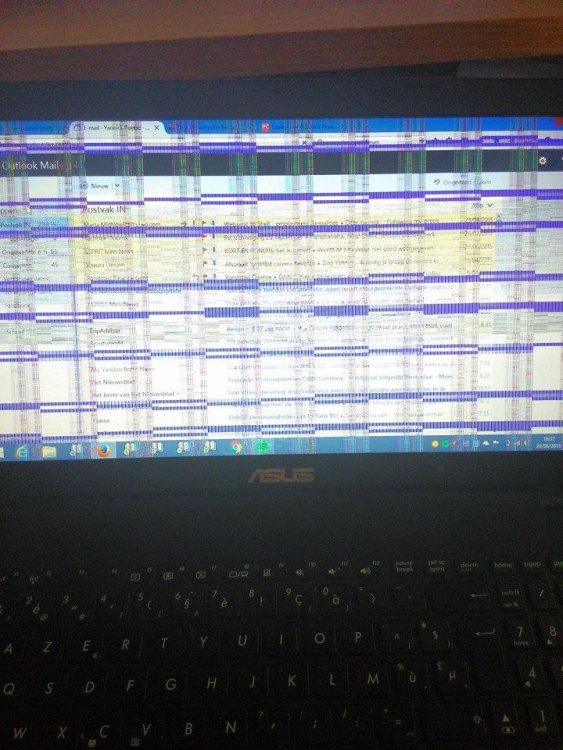 Dag, Ik heb recentelijk problemen met het beeldscherm van mijn laptop. Aanvankelijk kreeg ik bij het opstarten namelijk geen beeld meer en bleef het scherm onveranderd en compleet zwart . Ik heb de laptop nadien binnengebracht bij de lokale computerwinkel en het bleek dat het probleem bij mijn moederbord lag. Ze hebben dit hersteld, maar nu hapert het beeld soms (1/per dag) als ik een video bekijk of muziek afspeel en komt er uit de boxen een blijvend haperend geluid. Aangezien het beeld volledig vastloopt, moet ik op de aan/uit-knop drukken om mijn laptop terug te gebruiken. Ik merk verder geen andere problemen op zoals oververhitting,... Het enigste dat is veranderd is een update naar Windows 8.1 en daarom vroeg ik af mijn besturingssysteem wel compatibel is met de hardware. Vooraleer ik terug ga naar de winkel, wou ik eerst kijken of ik misschien met jullie hulp het probleem kan oplossen. In bijlage vinden jullie alvast een foto van het haperend beeldscherm. Alvast bedankt, Yannick