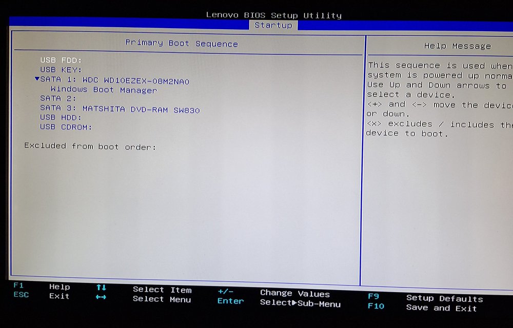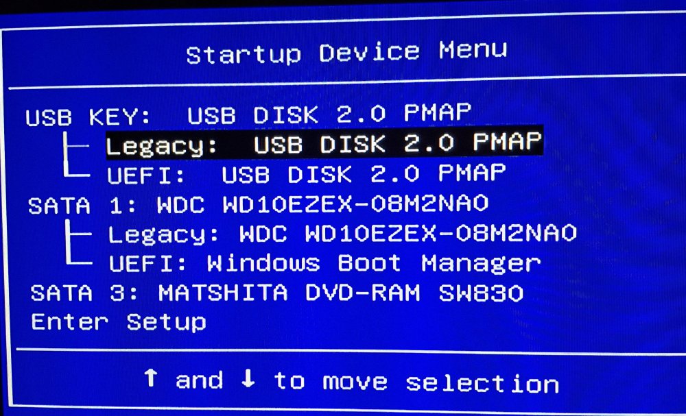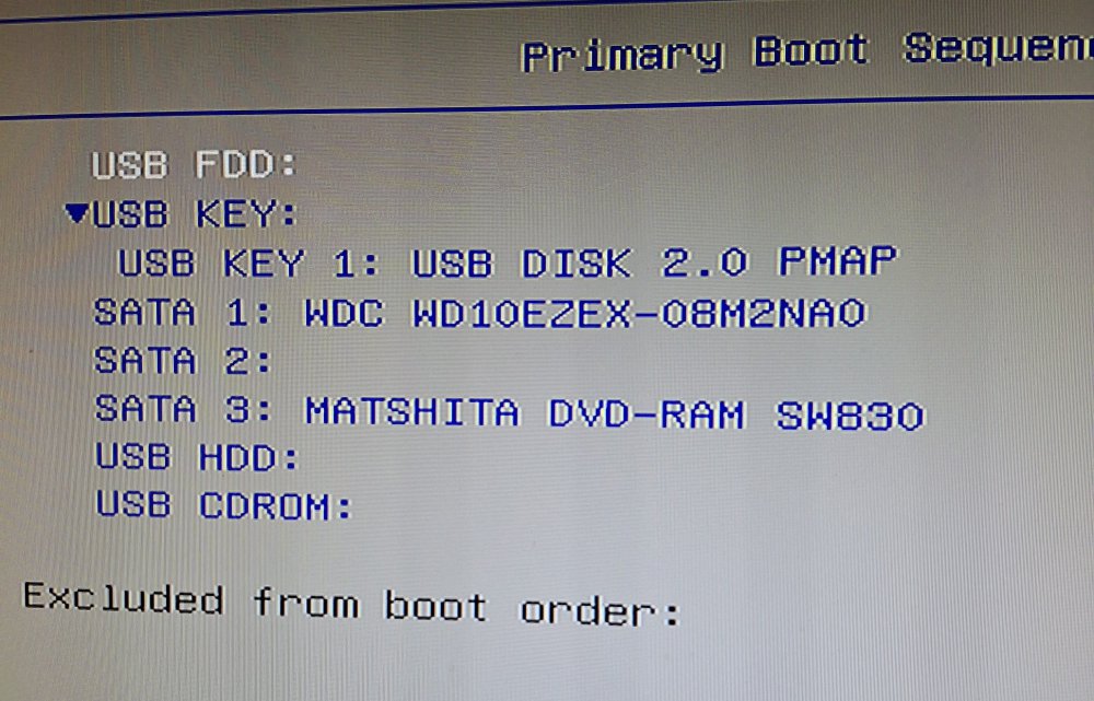 In de BIOS zie ik precies hetzelfde als gisteren. USB stick staat er niet tussen.