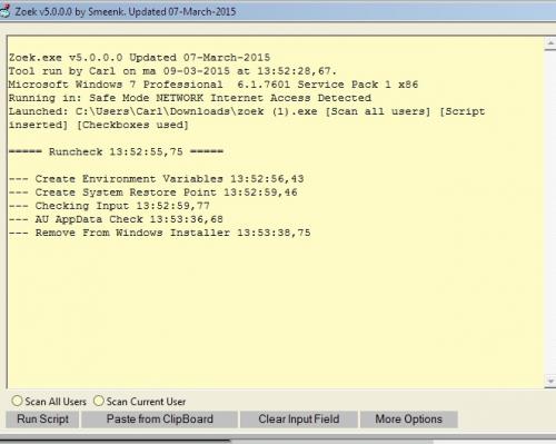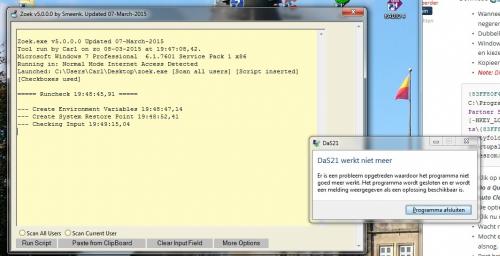 Ook in de veilige modus krijg ik de melding dat DaS21 niet meer werkt. Het kader van Zoek.exe krijg ik dan niet meer weg en moet daarvoor de pc opnieuw opstarten. -