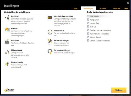 Norton 360 Multi Device. Kan hier echter de instellingen niet vinden waar je om vraagt. Ik zie dit: