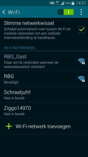 Hallo, Ik heb een Samsung galaxy S5 en deze vertoond vaak problemen met de wifi. Het bereik is hier zeer sterk en dit geeft die ook altijd aan. Als ik de info weergeef staat er Signaalsterkte 'Erg sterk' en koppelingssnelheid 144Mbps, Desondanks krijg ik de melding 'klaar om te verbinden wanneer de netwerkkwaliteit verbetert.' Eveneens valt soms de wifi plotseling weg. Ik heb geen slaapbeleid aanstaan en ook is de power saving mode uitgeschakeld (uitgeschakeld via *#0011#) Met vriendelijke groet, Dennis -