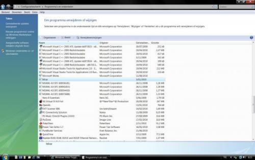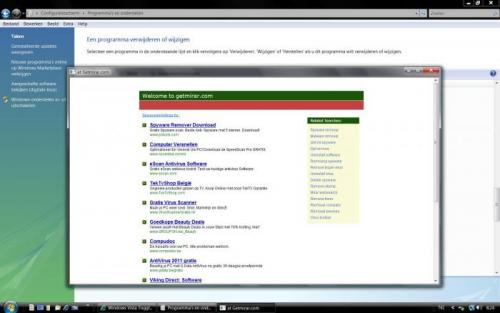 ToggleDu, SearchQu en Conduit toolbars problemenkets reageerde op kets's topic in Archief Internet & Netwerk De 1e O23 stond er niet tussen de 2 ander wel. De mappen zijn ook verwijderd. De pc ziet er al terug een heel stuk properder uit Enkel bij die Mirar krijg ik nog een pop up als ik die uit de lijst van software wil verwijderen. Die staat er al het langst op en wil er maar niet afgaan. Hier staat ie in de lijst. En dit krijg ik als ik op wijzigen/verwijderen klik Bij O23 zie ik hier in dit logje weer die Bandoo verschijnen. Logfile of Trend Micro HijackThis v2.0.2 Scan saved at 16:50:06, on 3/11/2010 Platform: Windows Vista SP2 (WinNT 6.00.1906) MSIE: Internet Explorer v8.00 (8.00.6001.18975) Boot mode: Normal Running processes: C:\Windows\system32\taskeng.exe C:\Windows\system32\Dwm.exe C:\Windows\system32\taskeng.exe C:\Windows\Explorer.EXE C:\Program Files\IObit\Advanced SystemCare 3\AWC.exe C:\Program Files\AVG\AVG9\avgtray.exe C:\Program Files\Common Files\ArcSoft\Connection Service\Bin\ACDaemon.exe C:\Program Files\Windows Sidebar\sidebar.exe C:\Windows\ehome\ehtray.exe C:\Program Files\Google\GoogleToolbarNotifier\GoogleToolbarNotifier.exe C:\Program Files\uTorrent\uTorrent.exe C:\Program Files\Windows Media Player\wmpnscfg.exe C:\Windows\ehome\ehmsas.exe C:\Program Files\Common Files\ArcSoft\Connection Service\Bin\ArcCon.ac C:\Windows\System32\mobsync.exe C:\Windows\system32\conime.exe C:\Program Files\Internet Explorer\iexplore.exe C:\Program Files\Internet Explorer\iexplore.exe C:\Program Files\Microsoft\Search Enhancement Pack\SCServer\SCServer.exe C:\Program Files\Google\Google Toolbar\GoogleToolbarUser_32.exe C:\PROGRA~1\Bandoo\BndCore.exe C:\Windows\system32\Macromed\Flash\FlashUtil10k_ActiveX.exe C:\Program Files\Trend Micro\HijackThis\HijackThis.exe C:\Windows\system32\msfeedssync.exe R1 - HKCU\Software\Microsoft\Internet Explorer\Main,Default_Page_URL = Welcome to ALDI R0 - HKCU\Software\Microsoft\Internet Explorer\Main,Start Page = Google R1 - HKLM\Software\Microsoft\Internet Explorer\Main,Default_Page_URL = Welcome to ALDI R1 - HKLM\Software\Microsoft\Internet Explorer\Main,Default_Search_URL = Bing R0 - HKLM\Software\Microsoft\Internet Explorer\Main,Start Page = Hotmail, Messenger, nieuws en entertainment vind je op MSN.nl R0 - HKLM\Software\Microsoft\Internet Explorer\Search,SearchAssistant = R0 - HKLM\Software\Microsoft\Internet Explorer\Search,CustomizeSearch = O1 - Hosts: ::1 localhost O2 - BHO: AcroIEHelperStub - {18DF081C-E8AD-4283-A596-FA578C2EBDC3} - C:\Program Files\Common Files\Adobe\Acrobat\ActiveX\AcroIEHelperShim.dll O2 - BHO: WormRadar.com IESiteBlocker.NavFilter - {3CA2F312-6F6E-4B53-A66E-4E65E497C8C0} - C:\Program Files\AVG\AVG9\avgssie.dll O2 - BHO: Search Helper - {6EBF7485-159F-4bff-A14F-B9E3AAC4465B} - C:\Program Files\Microsoft\Search Enhancement Pack\Search Helper\SEPsearchhelperie.dll O2 - BHO: Windows Live ID Sign-in Helper - {9030D464-4C02-4ABF-8ECC-5164760863C6} - C:\Program Files\Common Files\Microsoft Shared\Windows Live\WindowsLiveLogin.dll O2 - BHO: Google Toolbar Helper - {AA58ED58-01DD-4d91-8333-CF10577473F7} - C:\Program Files\Google\Google Toolbar\GoogleToolbar_32.dll O2 - BHO: SkypeIEPluginBHO - {AE805869-2E5C-4ED4-8F7B-F1F7851A4497} - C:\Program Files\Skype\Toolbars\Internet Explorer\skypeieplugin.dll O2 - BHO: Google Toolbar Notifier BHO - {AF69DE43-7D58-4638-B6FA-CE66B5AD205D} - C:\Program Files\Google\GoogleToolbarNotifier\5.6.5805.1910\swg.dll O2 - BHO: Java Plug-In 2 SSV Helper - {DBC80044-A445-435b-BC74-9C25C1C588A9} - C:\Program Files\Java\jre6\bin\jp2ssv.dll O2 - BHO: Bandoo IE Plugin - {EB5CEE80-030A-4ED8-8E20-454E9C68380F} - C:\Program Files\Bandoo\Plugins\IE\ieplugin.dll O2 - BHO: YouTube Downloader Toolbar - {F3FEE66E-E034-436a-86E4-9690573BEE8A} - C:\Program Files\YouTube Downloader Toolbar\IE\1.0\youtubedownloaderToolbarIE.dll O2 - BHO: SMTTB2009 - {FCBCCB87-9224-4B8D-B117-F56D924BEB18} - C:\Program Files\HyperCam Toolbar\tbcore3.dll O3 - Toolbar: YouTube Downloader Toolbar - {F3FEE66E-E034-436a-86E4-9690573BEE8A} - C:\Program Files\YouTube Downloader Toolbar\IE\1.0\youtubedownloaderToolbarIE.dll O3 - Toolbar: HyperCam Toolbar - {338B4DFE-2E2C-4338-9E41-E176D497299E} - C:\Program Files\HyperCam Toolbar\tbcore3.dll O3 - Toolbar: Google Toolbar - {2318C2B1-4965-11d4-9B18-009027A5CD4F} - C:\Program Files\Google\Google Toolbar\GoogleToolbar_32.dll O4 - HKLM\..\Run: [Windows Defender] %ProgramFiles%\Windows Defender\MSASCui.exe -hide O4 - HKLM\..\Run: [AVG9_TRAY] C:\PROGRA~1\AVG\AVG9\avgtray.exe O4 - HKLM\..\Run: [Malwarebytes Anti-Malware (reboot)] "C:\Program Files\Malwarebytes' Anti-Malware\mbam.exe" /runcleanupscript O4 - HKLM\..\Run: [ArcSoft Connection Service] C:\Program Files\Common Files\ArcSoft\Connection Service\Bin\ACDaemon.exe O4 - HKLM\..\Run: [Adobe Reader Speed Launcher] "C:\Program Files\Adobe\Reader 9.0\Reader\Reader_sl.exe" O4 - HKLM\..\Run: [Adobe ARM] "C:\Program Files\Common Files\Adobe\ARM\1.0\AdobeARM.exe" O4 - HKCU\..\Run: [sidebar] C:\Program Files\Windows Sidebar\sidebar.exe /autoRun O4 - HKCU\..\Run: [ehTray.exe] C:\Windows\ehome\ehTray.exe O4 - HKCU\..\Run: [swg] "C:\Program Files\Google\GoogleToolbarNotifier\GoogleToolbarNotifier.exe" O4 - HKCU\..\Run: [uTorrent] "C:\Program Files\uTorrent\uTorrent.exe" O4 - HKCU\..\Run: [Google Update] "C:\Users\Wil\AppData\Local\Google\Update\GoogleUpdate.exe" /c O4 - HKCU\..\Run: [WMPNSCFG] C:\Program Files\Windows Media Player\WMPNSCFG.exe O4 - HKUS\S-1-5-19\..\Run: [sidebar] %ProgramFiles%\Windows Sidebar\Sidebar.exe /detectMem (User 'LOCAL SERVICE') O4 - HKUS\S-1-5-19\..\Run: [WindowsWelcomeCenter] rundll32.exe oobefldr.dll,ShowWelcomeCenter (User 'LOCAL SERVICE') O4 - HKUS\S-1-5-20\..\Run: [sidebar] %ProgramFiles%\Windows Sidebar\Sidebar.exe /detectMem (User 'NETWORK SERVICE') O4 - HKUS\S-1-5-21-1543919595-616552816-3086994397-1005\..\Run: [sidebar] C:\Program Files\Windows Sidebar\sidebar.exe /autoRun (User 'Jens') O4 - HKUS\S-1-5-21-1543919595-616