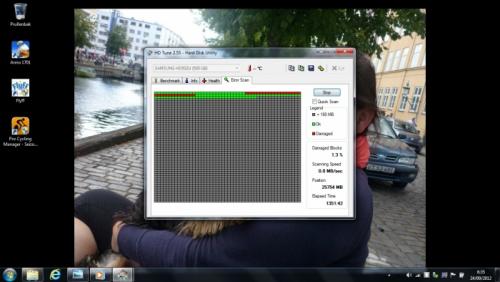 Zowel schijfcontrole en HD-tune lopen héél lang. Ik heb ze 48u laten lopen ofzo, maar het geraakte niet beëindigd Iemand anders een idee, want ik zou toch heel graag een oplossing vinden... -