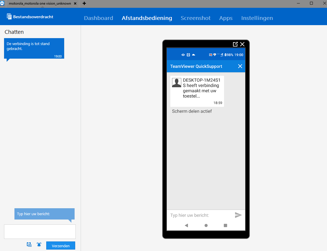 ik heb als test via Google play teamviewer op mijn android smartphone geïnstalleerd. Om verbinding te maken tussen PC en smartphone moest ook Quicksupport van Teamviewer geïnstalleerd worden, dit kon via het beginscherm van teamviewer. Heb niks moeten betalen, en het werkt perfect. Ook op Ipad kon ik verbinding maken. Of: https://www.clevguard.org/parental-control/apps-to-remote-control-android-phone/?gclid=Cj0KCQiAj4ecBhD3ARIsAM4Q_jHStX3OhfI3xg0JO9q2UuG1qKm_aluUwvI0N4ybNnVGoWQnvYVDY8gaAsoCEALw_wcB