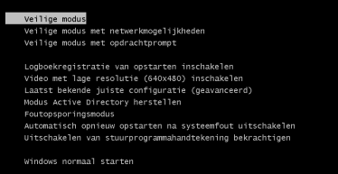 Kan je in veilige modus opstarten, door op de F8 toets te tokkelen direct bij het herstarten van je PC?
