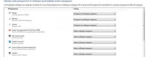 Windows of Hardeschijf probleemweeternietzoveelvan reageerde op weeternietzoveelvan's topic in Archief Windows 7 Nee, dat zeg ik niet. Het bleek dat de Microsoft SE icoon, niet veranderd kon worden, Ik heb de regedit file terug gezet via importeren. Daarna opnieuw opgestart. Het Microsoft SE icoontje in verborgen pictogrammen kan ik nu wel weer veranderen zodat het melding en pictogram weergeven er voor zorgt dat de icoon weer op de taakbalk staat.